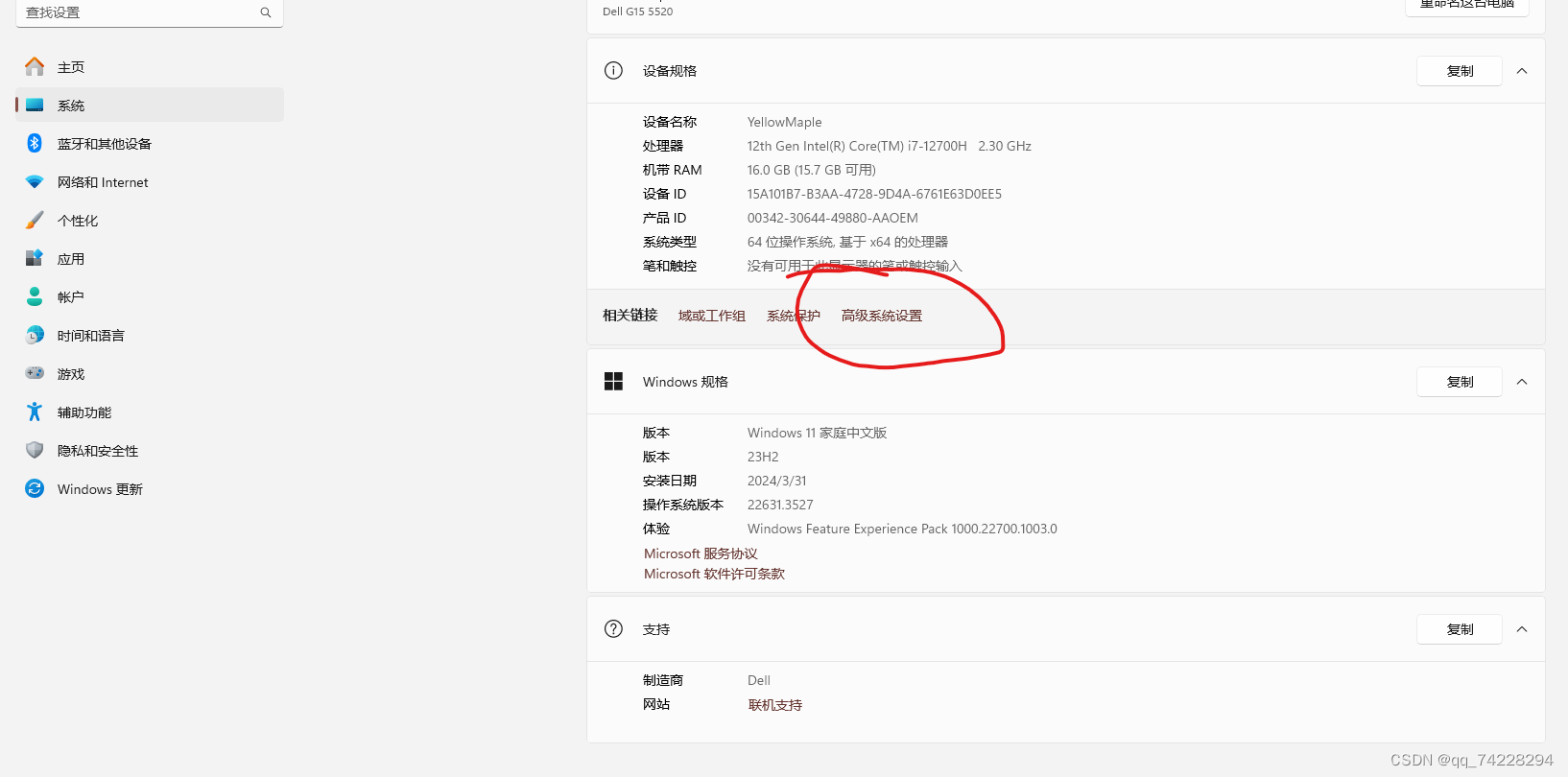 在打开的页面中就可以看到当前计算机名称、操作系统、CPU、内存等重要信息。