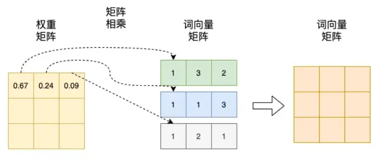 置换不变:随意调换输入中词的位置,并不会让注意力权重发生变化,注意力层的整个结果维持不变。具体来说,每一个词向量计算结果不变,仅仅是词向量在输出矩阵的排列随着词和词位置互换而对应调整了一下。词向量输出矩阵可参考下图: